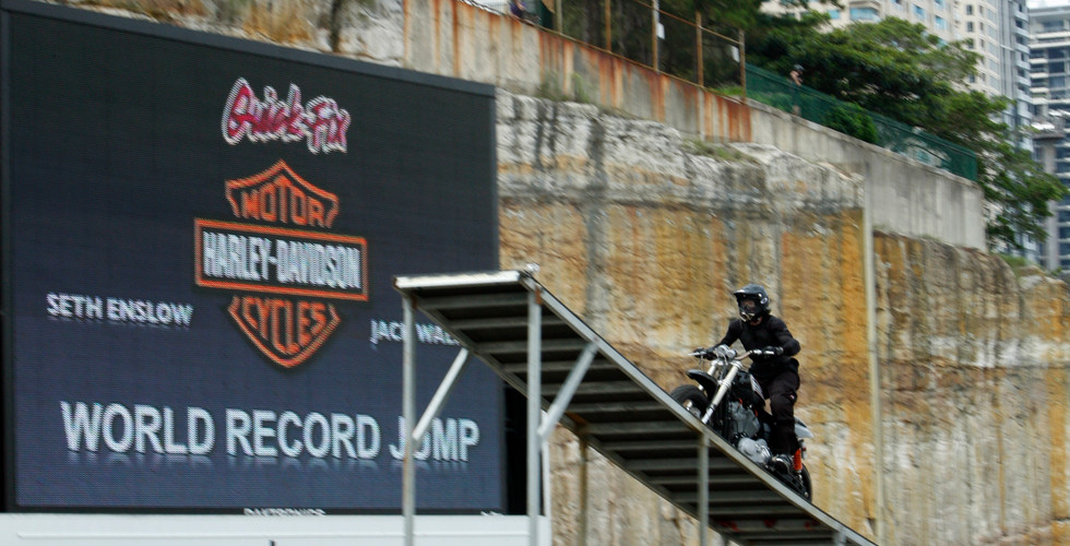 I was fortunate to be witness of Seth’s history making Harley Davidson record jump back in 2010, where Seth jumped the purpose built Quick Fix Harley Davidson 183.7 feet (55.99 meters) at Barangaroo Park on the Sydney Harbour foreshore to smash the former record held by Bubba Blackwell’s previous record of 157 feet (47.85 metres).