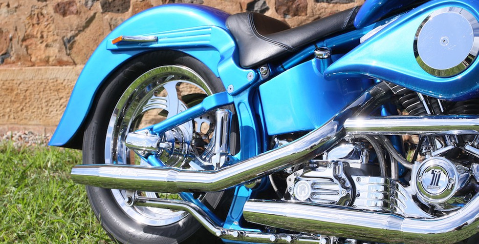 Mark Delucia’s has been able to combine power and style and has still been able to retain the bare bones integrity of his beloved 99 Softail Standard.