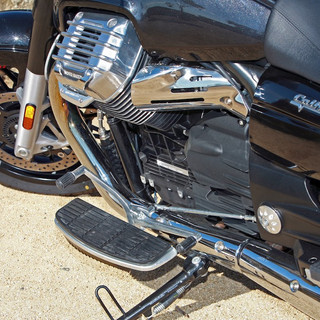 As mentioned, the overall look of the bike is what one would expect from the Italian manufacturer both stunning and with the Moto Guzzi traditional transversal Vtwin heads protruding each side of the bike, somewhat intriguing to many. The east west displacement of the motor is a well-known identifying signature of Moto Guzzi. Much of the California styling is inherited from many of the bikes ancestors.