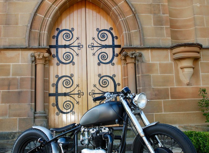 The bike’s owner Nick Bailey introduction to motorcycles was on a Raptor racing quad he used to run around the family’s 3000 acre farm and it was only when young Nick came back to the big smoke to pursue a career in the marine industry that he decided to build a bike of his own. Nick always had a thing for V Twins but for reasons best known to him he decided to build a Triumph. The look he had in mind for his dream bike was from the 1950’s, a little ‘’rattish’’ and with hot rod style accessories. Scouring the classifieds Nick found himself a donor project and though the bike was complete it wasn’t running and the state of its mechanicals unknown. Nick would spend countless hours in his garage with the bike taping it up and imagining colour schemes.