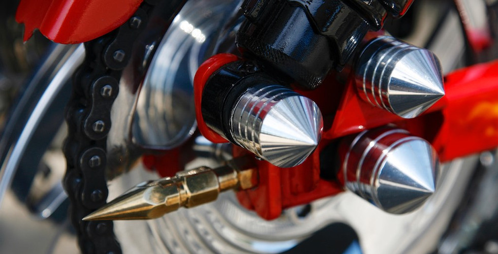 John says he owes a lot to Tafe with much of the accessories as with the exhaust being made on his course. The Speedo and tacho brackets as with the axel adjuster’s nut and spike lockout, brass and billet spikes were all made at tech.