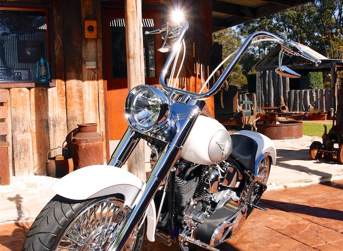 I don’t think there would honestly be one of you out there that doesn’t remember your first? Your first girlfriend, first car or those of us lucky enough first bike. Memories good or bad our first always holds a special place in our hearts. Feature bike owner Ben Lynch brought his first bike new (a 1994 Nostalgia) off Metho Tom at Blacktown Harley when he was twenty back in 1994 (ok do your sums, I know you want to!). As all young blokes do Ben went through a phase of customisation. An apprentice engineer by trade and spare coin hard to find Ben would make many of the parts himself. Years pasted, and with his career taking off Ben didn’t have the time he once had and the bike customisation came to a halt up until last year. The thought never entered Ben’s mind to sell the bike, it was still his pride and joy and held too many found memories so he decided to give the old girl an overhaul, somewhat of a face lift and not lose any of its original styling and sentimental values and not an unrecognisable recreation and keep some of the original special features and add some of those nice touches like a wide arse rear end.